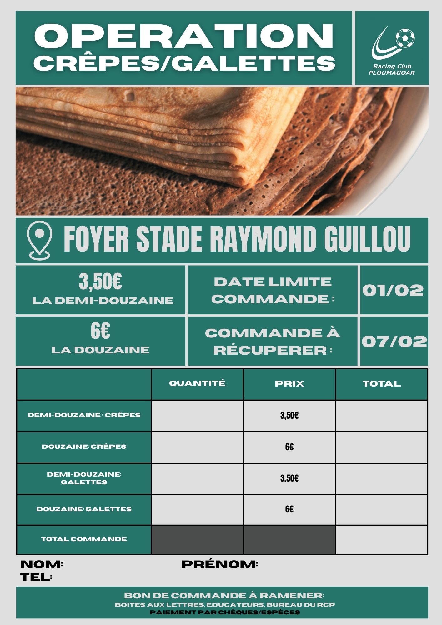 📍 Lieu de retrait : Foyer du stade Raymond Guillou
